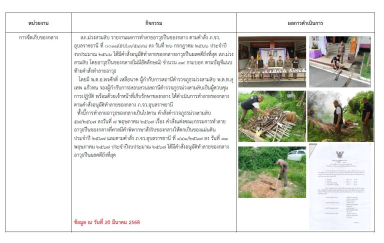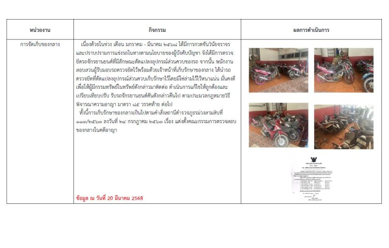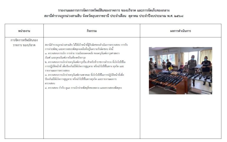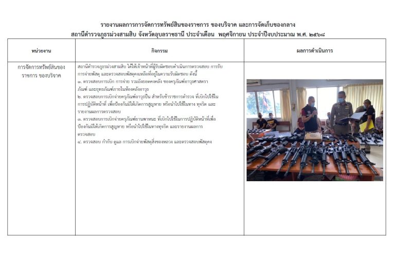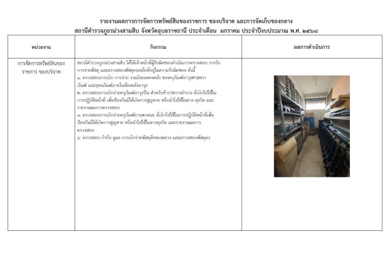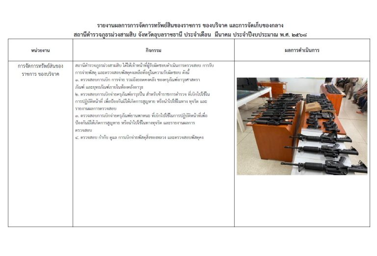 รายงานผลการปฏิบัติเกี่ยวกับการจัดการทรัพย์สินของราชการ ของบริจาค การจัดเก็บของกลาง ต.ค.67 - มี.ค.68