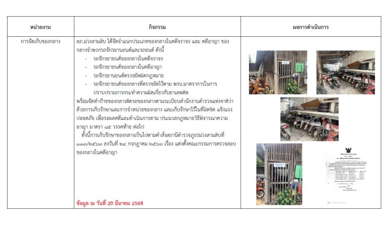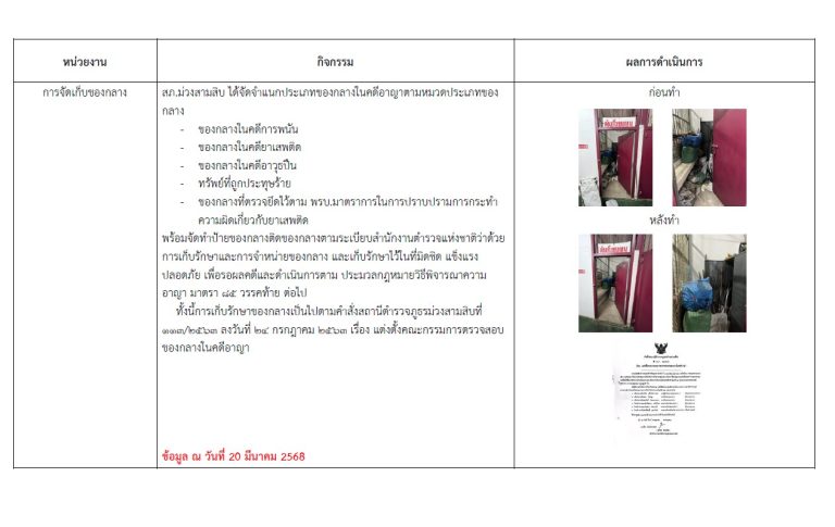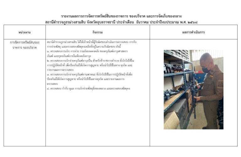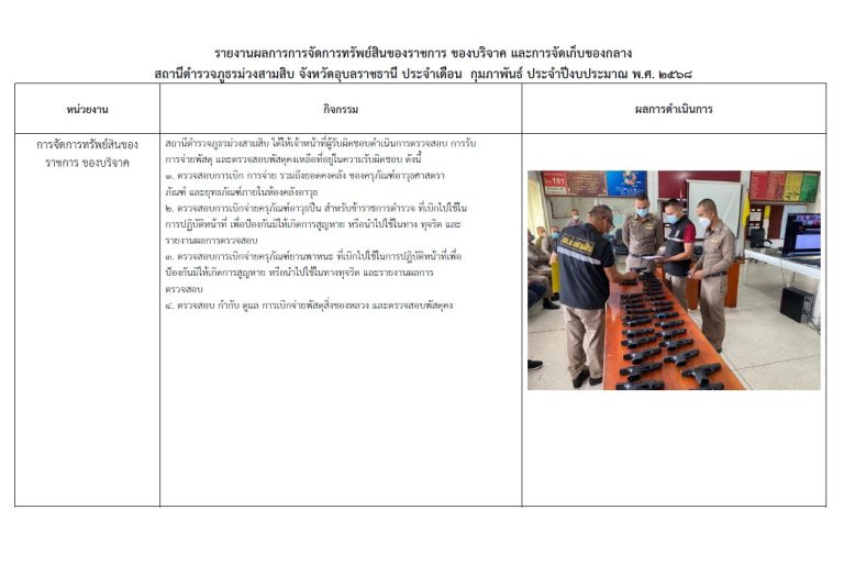 การจัดการทรัพย์สินของราชการ ของบริจาค การจัดเก็บของกลาง และสำนวนการสอบสวนคดีอาญาและจราจร